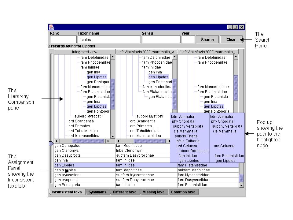 trees. Highlighting an entry in the table will show the node in the hierarchy